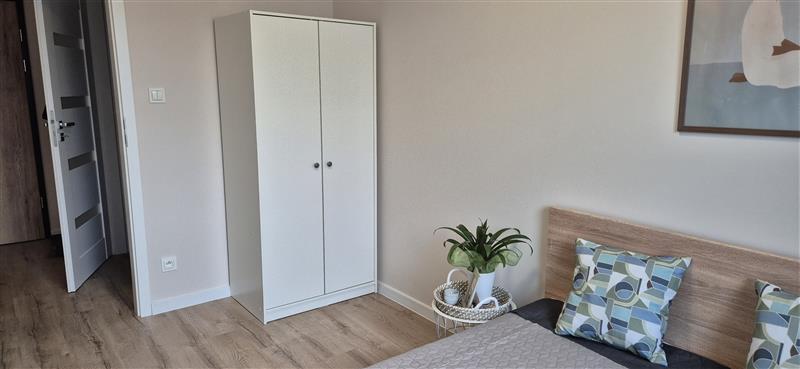 - Sypialnia umeblowana, z dużym łóżkiem i pojemną szafą.